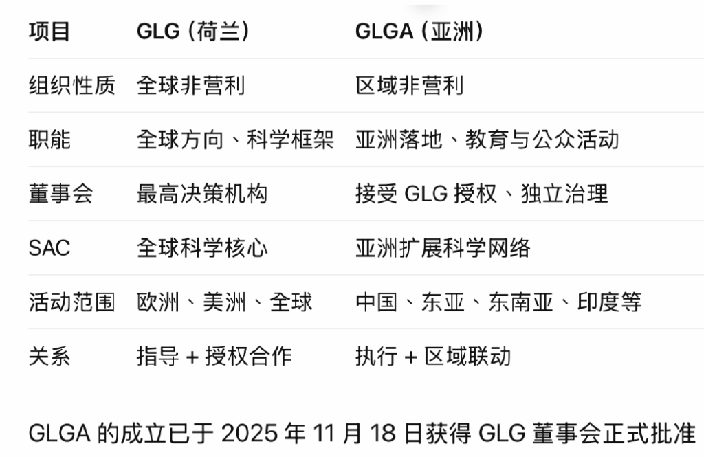GLGA(Good Light Group Asia)是 GLG 授权设立的亚洲区域合作伙伴,依据 GLG 的国际合作框架成立,旨在推动科学研究、教育普及与标准体系在亚洲的本地化落地,并严格遵循 GLG 所坚持的科学独立性、非商业导向与公益原则。
